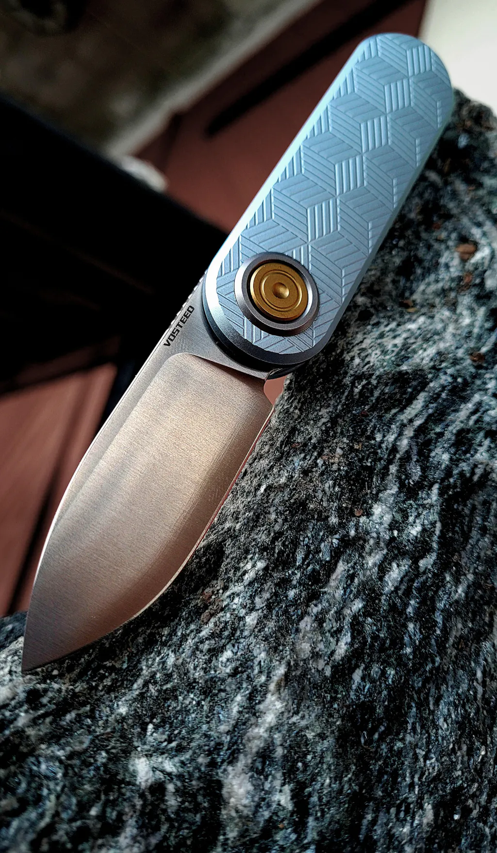 Despite the enhanced textures and larger button, the knife remains slim — engineered through countless prototypes to keep a sleek profile and ideal blade-to-handle ratio.
