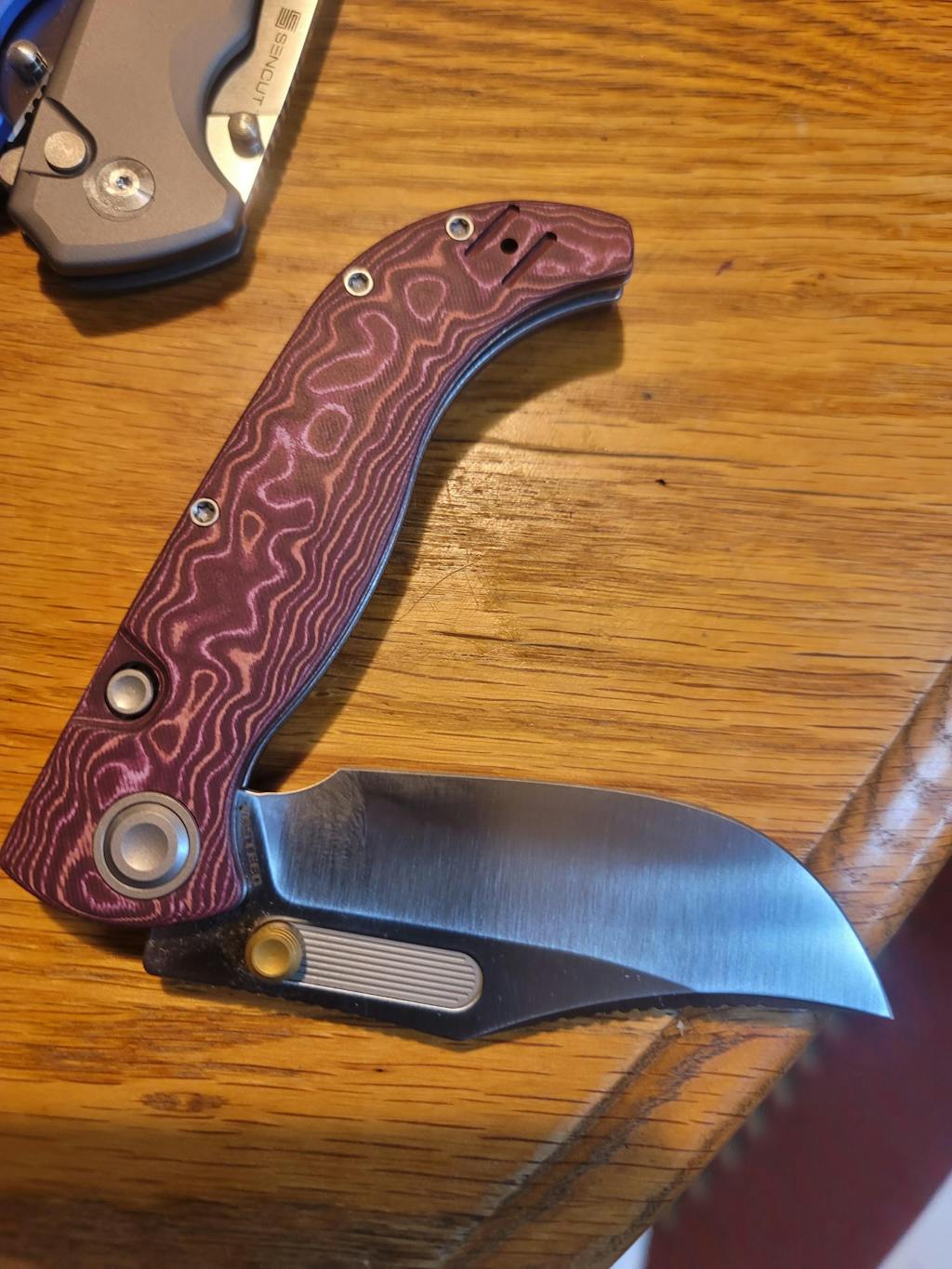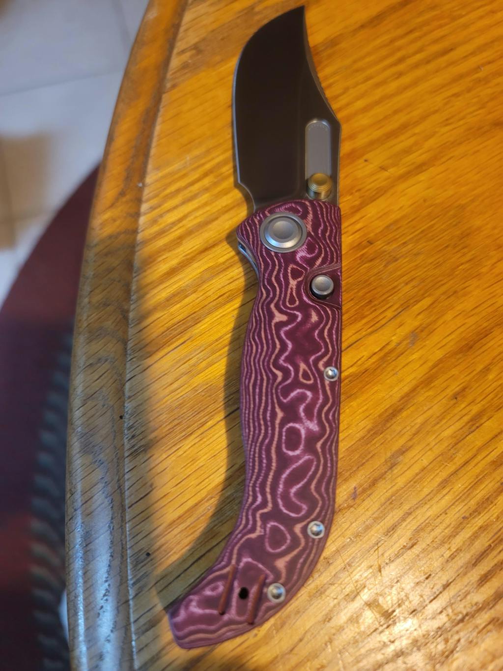 · Scarlet Void – crafted from traditional Micarta, this variant swirls crimson and shadow into a fiery, timeless look that balances passion and poise.