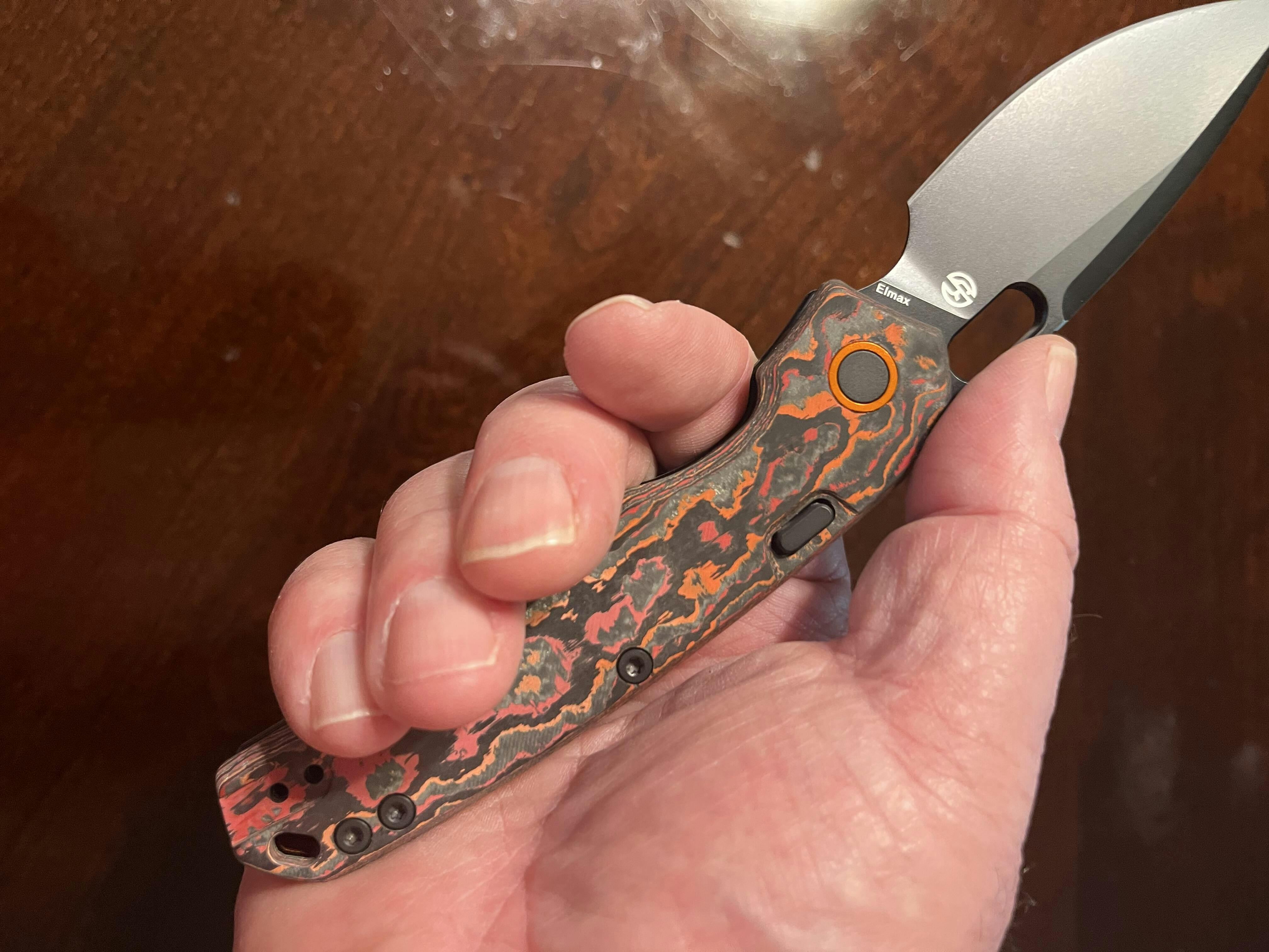 The Psyop features 3.32"" Elmax blade that has excellent wear resistance, good corrosion resistance, and high dimensional stability. The 0.137” (3.5mm) thick (finished) Elmax blade has both a generously ground belly for effortless slicing and a pointed tip for accurate piercing. Whether you're slicing through packages, performing detailed tasks, or tackling outdoor activities, the Psyop is up to the challenge.